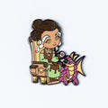 From trade deals in the Reshi Isles to managing the Royal Gemstone Reserve in Thaylenah, this is one woman who has truly done it all. Pictured here with her adorable larkin, Chiri-Chiri, Dragonsteel Character Pin Series 3, #004 is Rysn! While she lost the use of her legs, her recent adventures have proven she’s always been capable of great things.